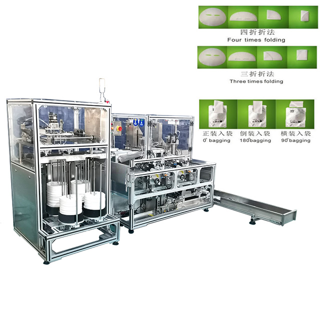 4、自動裝袋。面膜折棉機(jī)把調(diào)整好的棉布進(jìn)行自動裝袋;